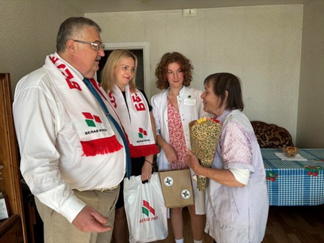 В канун Дня пожилых людей активисты первичной профсоюзной организации УЗ "39-я городская клиническая поликлиника" совместно с активистами «Белая Русь» поздравили узницу немецкого концлагеря в городе Мосбах Смирнову Веру, пожелали ей крепкого здоровья, долгих лет жизни, заботливого внимания и любви от родных, вручили подарки. Вера Смирнова в очередной раз поделилась своими детскими воспоминаниями о страшных военных годах и пожелала всем мирного неба, чтобы не было войны на нашей прекрасной белорусской земле.
